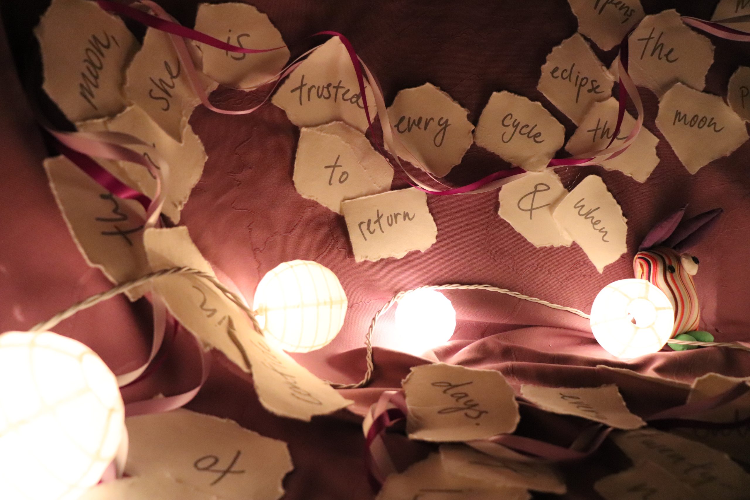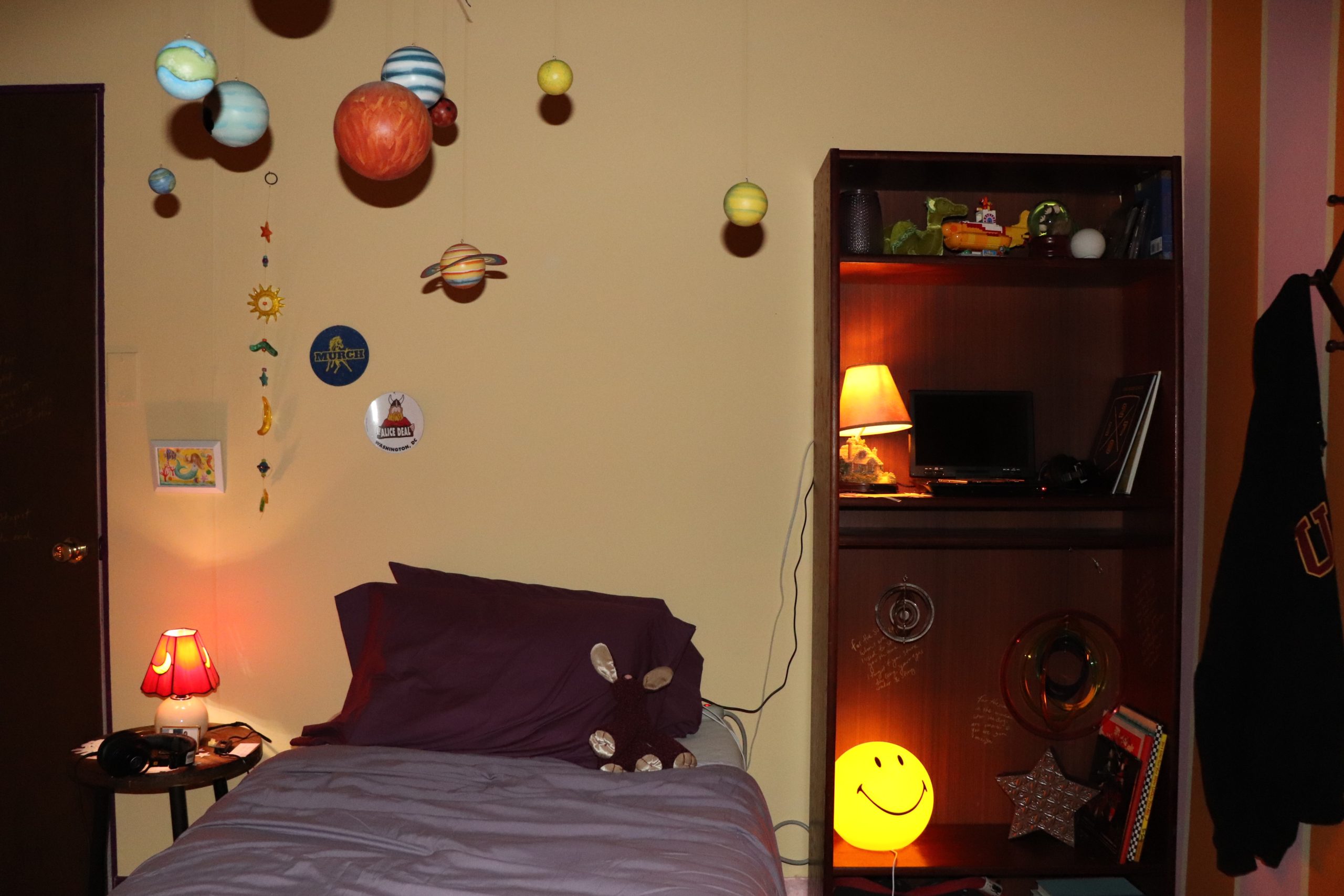 The world does not revolve around me, the universe does is an interactive film installation navigating the complexities of familial relationships. Materialized as a recreation of the artist’s childhood bedroom, four films play throughout the space each containing a letter to her family. Through re-interpreting techniques from art therapy practices, the artist’s goal is to find new ways to communicate her feelings and vulnerabilities with her family that would otherwise go undiscussed.